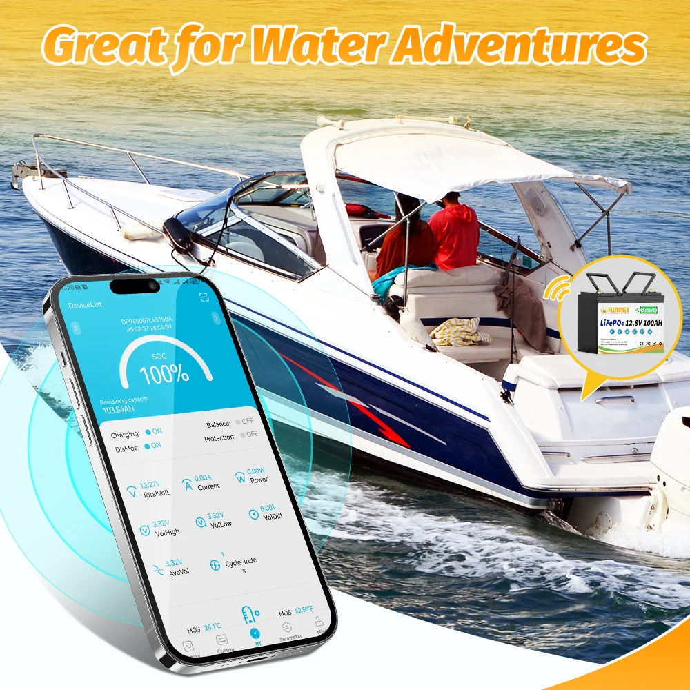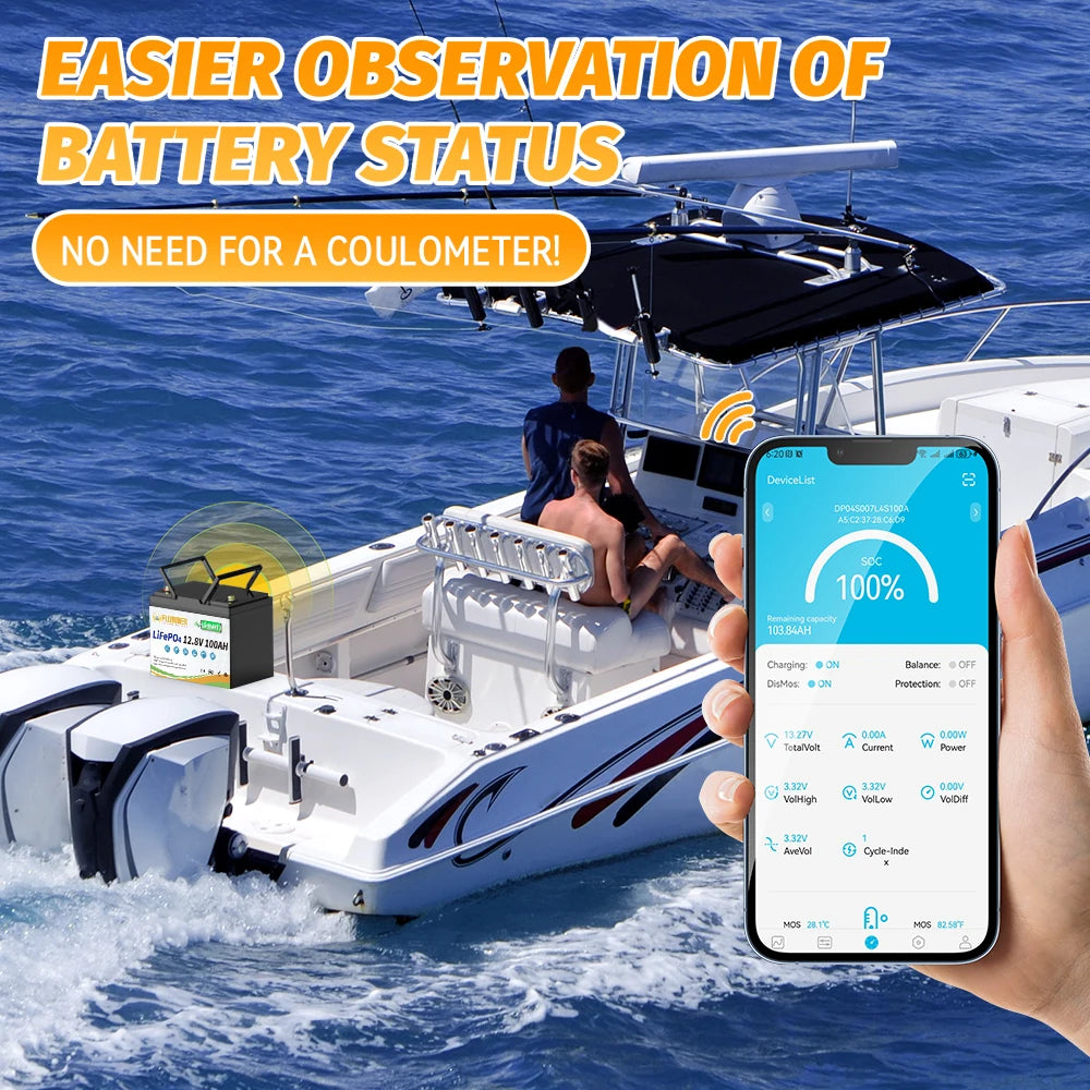 12V 100Ah Lithium Battery Pack With Bluetooth 100A BMS Deep Cycles