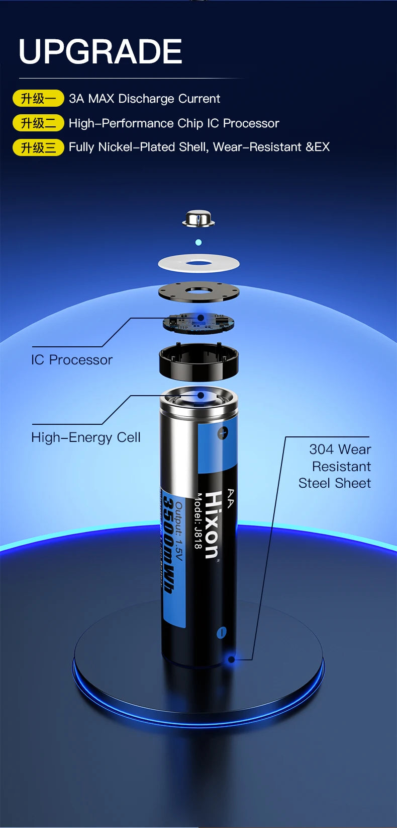 3500mWh 1.5V AA Li-Ion Rechargeable Battery