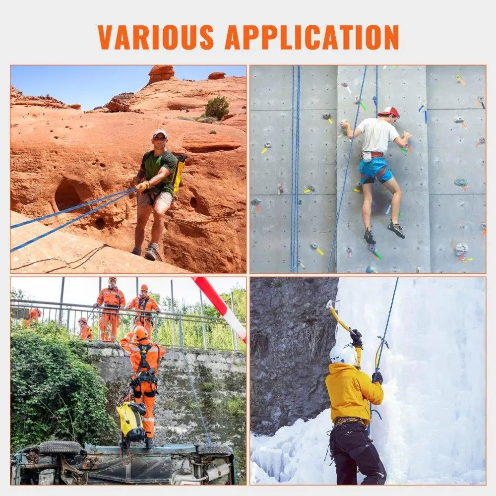 Dynamic Climbing Rope 10.2mm 60M 25KN Breaking Tension with Steel Snap Hooks