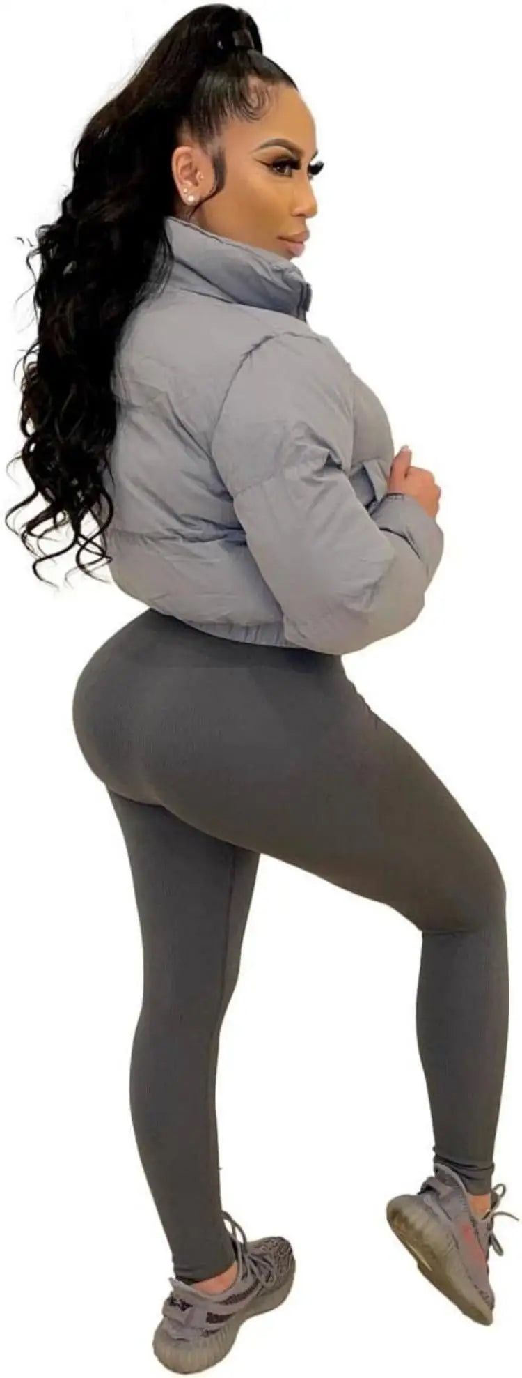 womens Puffer Jacket Cropped Zip Casual Cotton Coat